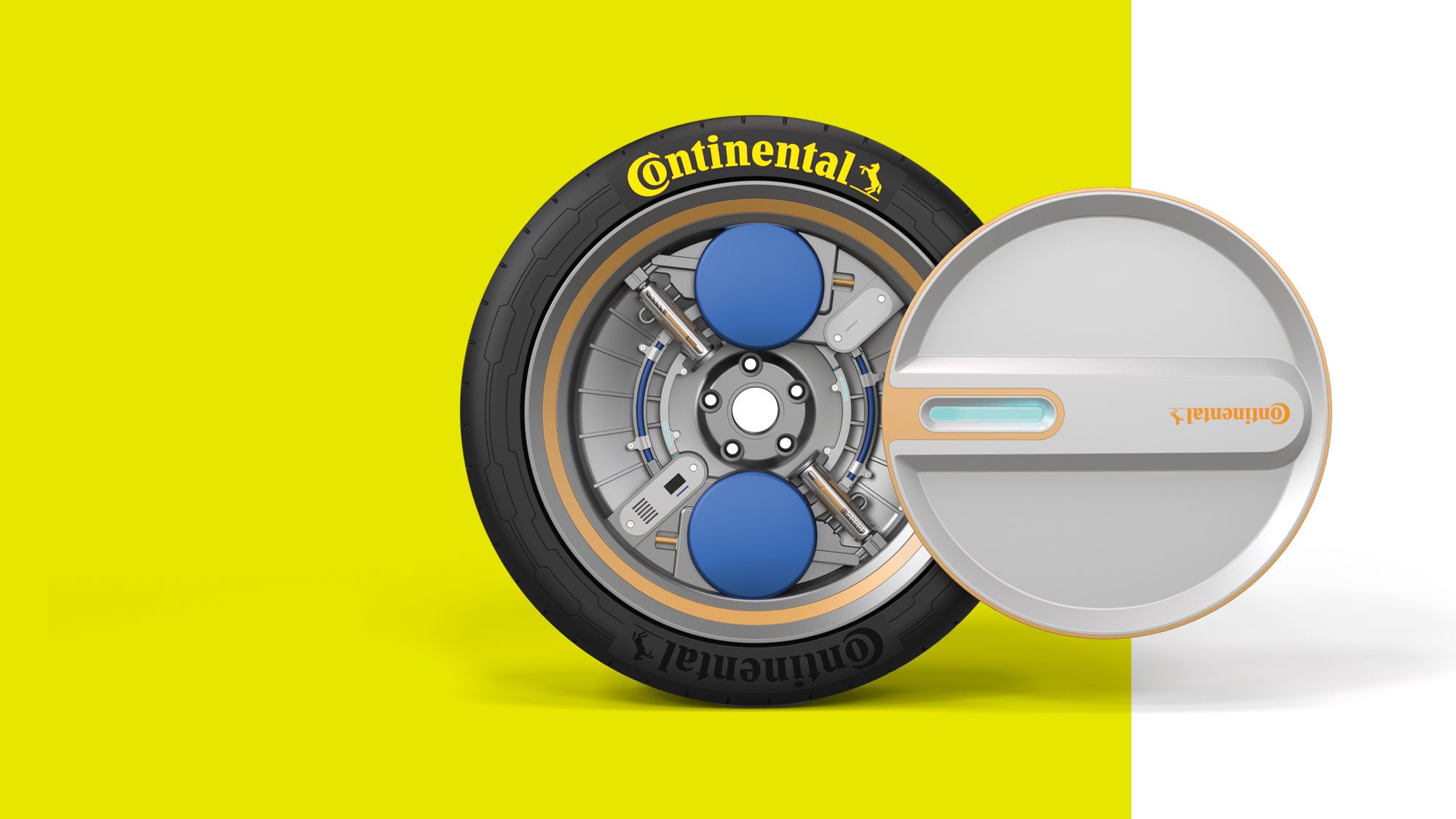The approach of actively regulating tire pressure via centrifugal pumps integrated in the wheel is equally innovative. When the vehicle accelerates, the centrifugal force in the wheel acts on the pump and generates compressed air. »PressureProof«technology thus keeps tire pressure constantly in the optimum range and helps save CO2 in the long term. Surplus compressed air is collected in an integrated tank. »PressureBoost« technology utilizes it to adjust the inflation pressure to different driving situations at short-term notice.